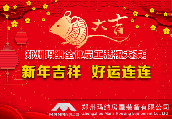 風雨送春歸,金鼠迎春到,瑪納公司由衷感恩所有新老客戶在過去一年里對瑪納品牌的信賴與支持,新年新愿景,新年新征程,值鼠年春節來臨之際,瑪納公司領導攜全體員工恭祝全國人民:新年快樂、鼠年吉祥、財運旺盛、家庭幸福、萬事如意、心想事成!祝愿嶄新的一年里,瑪納全體家人精誠合作,攜手共進,只爭朝夕,不負韶華,創造美好未來!