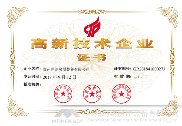2019年3月11日,瑪納公司獲得了高新技術企業證書。