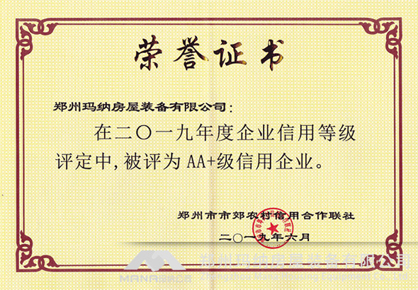 ③瑪納公司榮獲-鄭州市市郊農村信用合作聯社頒發的榮譽證書。