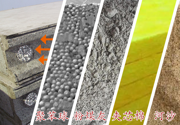 復合夾芯保溫隔墻板夾心層為廢棄的工農業固廢保溫材料,采用聚氨酯硬質發泡材料粘接而成,夾心層四周為邊框,它充分的利用廢棄保溫材料,減少能耗,保護環境。成型的復合夾芯輕質隔墻板質輕、具有良好的抗沖擊性能、良好的保溫和防火性能,隔音效果超好,并且原料來源廣泛、價格低廉,投資低成本。