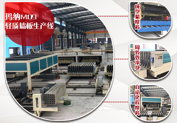 瑪納公司作為一家集研究、制造、銷售、服務于一體高端環保智能墻板設備的高新技術企業,其發泡水泥輕質隔墻板生產線生產過程采用成組立模成型工藝,降低生產線過程中對能源的消耗,沒有粉塵和噪音污染,完全吻合國家節能減排政策要求。