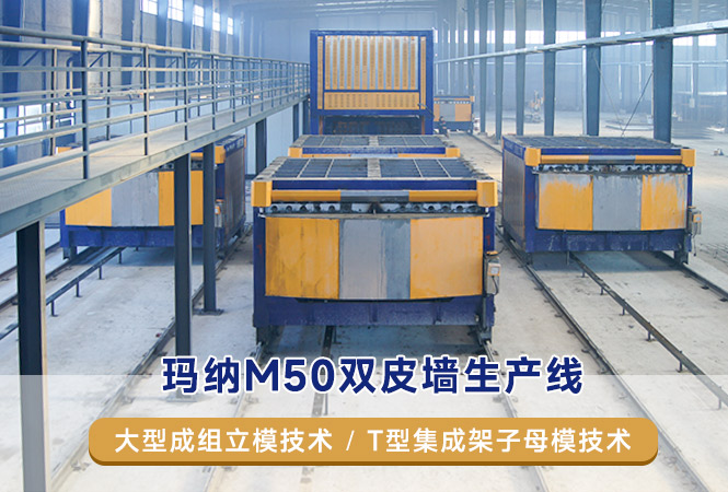預制裝配式殼板品種繁多,結構復雜,精度要求高,現有傳統(tǒng)的工藝裝備均無法滿足其生產需要,瑪納公司于2013年開發(fā)的子母模工藝裝備生產線,完好的解決了墻板板殼的工業(yè)化制造難題,為墻板板殼的推廣、應用奠定了基礎。
