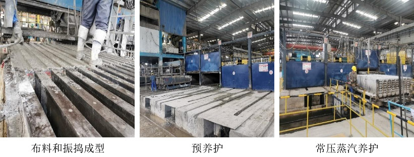 之后進行抽芯處理,經過表面質量檢測和修復后,開始進行蒸壓養護處理,蒸壓養護過程分為升壓、恒壓、降壓三個過程:升壓階段(15min 0.10MPa;30min 0.25MPa;45min 0.35MPa;1h 0.50MPa)、恒壓階段(2h、0.5±0.05MPa)、降壓階段(15min 0.40MPa;30min 0.30MPa;45min 0.20MPa;1h 0.15MPa;1h15min 0.10MPa;1h30min 0MPa)、降溫冷卻 30min。