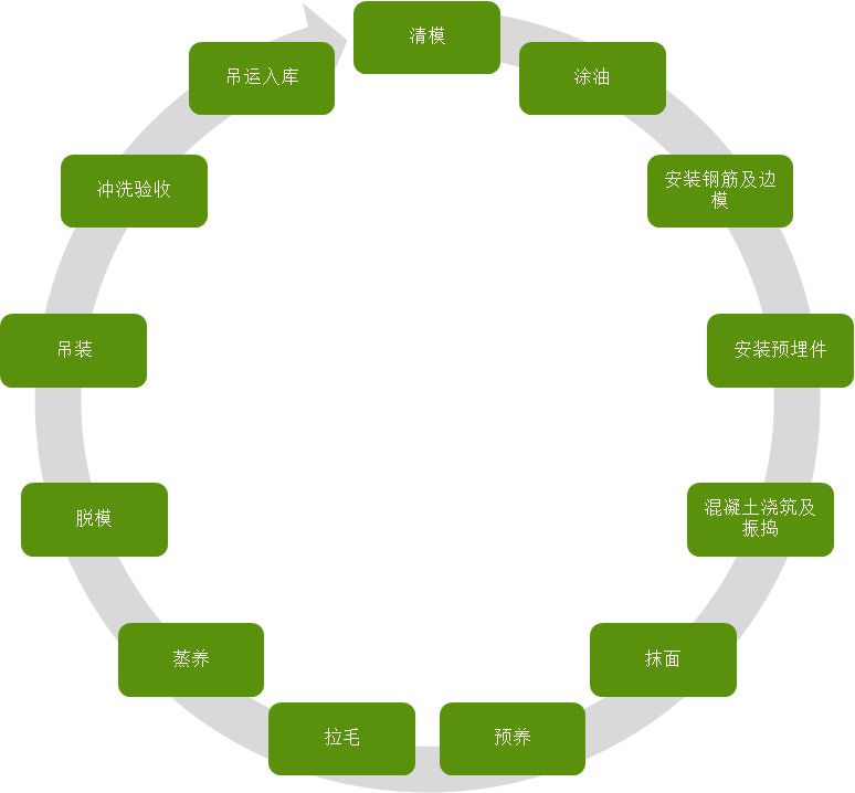 ⑦預(yù)養(yǎng):疊合板進入預(yù)養(yǎng)護窯,預(yù)養(yǎng)護時間1h。