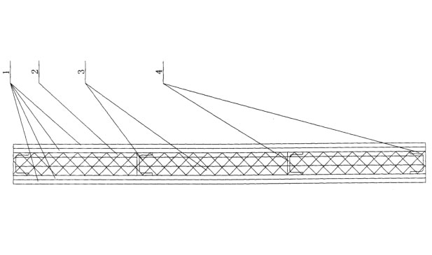 為了解決背景技術(shù)所存在的問(wèn)題,特采用以下技術(shù)方案:它包含纖維硅酸鈣板1、第一巖棉層2、第二巖棉層3、和豎龍骨4;豎龍骨4兩側(cè)分別設(shè)置有兩層纖維硅酸鈣板1,外側(cè)的纖維硅酸鈣板1內(nèi)設(shè)置有第一巖棉層2,兩層纖維硅酸鈣板1中間設(shè)置有第二巖棉層3。