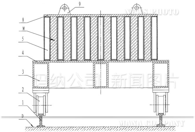 成組立模是建筑用條形墻板的專用生產(chǎn)設(shè)備。它是以成型模腔M為主體,成型模腔M是由底架3、底板4、隔板5、開啟堵板6、上壓板8等模塊圍成的六面體成型空腔(詳見圖1~圖3)。條形墻板就是通過向成組立模的成型模腔M中澆注所需板材的料漿并經(jīng)過凝固、養(yǎng)護后得到的外形與成型模腔完全一致的六面體。條形墻板的六個面分別是兩個側(cè)面、四個邊模面。其中墻板的側(cè)面是由垂直于水平底邊模并等間距布置的隔板來實現(xiàn)其成型的,即條形墻板的側(cè)面在成組立模中成型時一定處于與地面垂直的狀態(tài)。但四條邊模面在傳統(tǒng)成組立模中的安裝位置分為兩種:側(cè)立式和豎立式。所謂側(cè)立式是指兩個長邊邊模面呈上、下水平對稱布置,兩個短邊邊模面呈左、右豎直對稱布置;而豎立式正好與此相反,是兩個短邊邊模面呈上、下水平對稱布置,兩個長邊邊模面呈左、右豎直對稱布置。但無論是哪種成型拼裝方式,總有兩個邊模面是呈上、下水平對稱布置的。當(dāng)通過注料孔(ZLK)向封閉的模腔中進行壓力注料時,隨著注入料漿的增多模腔里的空氣逐步被擠壓上移,最后聚集到上壓板8附近。如果氣體不及時排出,對上壓板附近料漿的流動及上成型面的成型質(zhì)量都有嚴(yán)重的不良影響。為了使模腔內(nèi)的氣體能夠排出,在上壓板8上需設(shè)置排氣孔(PQK)。為了使用排氣順暢,排氣孔的數(shù)量越多越好。但是在排氣孔附近的成型質(zhì)量肯定不理想,排氣孔數(shù)量越多則相應(yīng)的上成型面(即上邊模面)的成型質(zhì)量越差。而且,即使排氣孔數(shù)量再多,其中間也有一定的間隔距離,再加上排氣孔容易阻塞(因為排氣孔不可能太大),以至于上成型面不可避免地經(jīng)常發(fā)生“氣堵”或者出現(xiàn)大氣泡,嚴(yán)重影響上成型面(即上邊模面)的成型質(zhì)量。