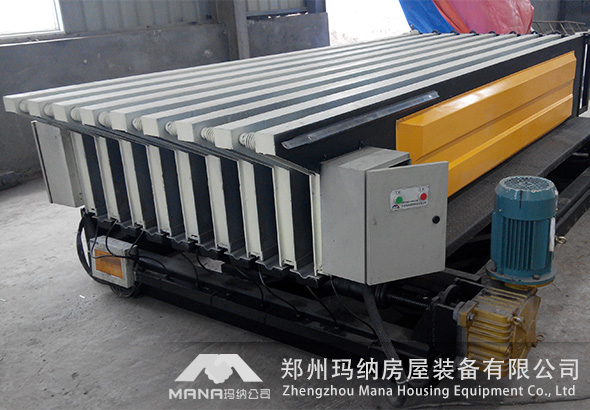 輕質(zhì)隔墻板成型機(jī)采用連續(xù)張網(wǎng)式布網(wǎng),保證了網(wǎng)格布的位置及保護(hù)層厚度,并使網(wǎng)格布處于張緊狀態(tài),穩(wěn)定并提高了結(jié)構(gòu)強(qiáng)度。