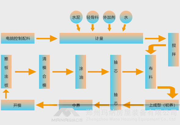 M09輕質墻板生產線整體技術采用MANA公司自主創新研制開發的新型成組立模技術裝備(系原始技術創新開發,獲得MN級技術鑒定),采用立模法機組流水工藝生產,使用瑪納多項MN技術做支撐,擁有完全的自主知識產權,主要滿足用戶大規劃、高品質、高度機械自動化的產品需要,是目前國內外最先進的成組立模法生產墻材的裝備。