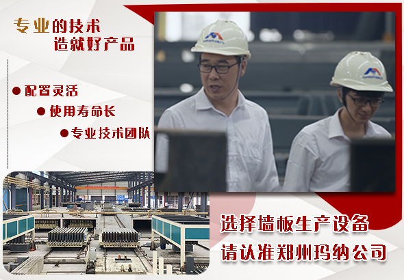 瑪納公司是專業(yè)的墻板設(shè)備廠家,歷經(jīng)30余年的發(fā)展,擁有多年的墻板設(shè)備研發(fā)生產(chǎn)經(jīng)驗,市場占有率非常高,客戶也是遍布全國各個地區(qū),很多客戶墻板生產(chǎn)線已成為當(dāng)?shù)匦袠I(yè)標(biāo)桿,接待眾多企業(yè)的參觀考察,瑪納公司擁有自主設(shè)計研發(fā)團隊,公司有多位高級工程師,可根據(jù)客戶要求在原有設(shè)備基礎(chǔ)上滿足個性需求,公司實施廠家直銷模式,所有墻板設(shè)備均直接針對終端客戶,省去中間環(huán)節(jié),價格更合理化。